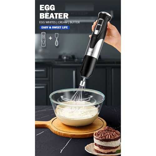 - Versatile 4-in-1 Design: This kitchen blender combines a hand blender, chopper, whisk, and includes two cups (500ml and 600ml) for diverse food preparations like purees and smoothies.