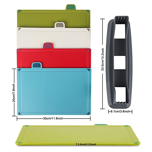 4 Pack Chopping Boards, Colors Multicolor Kitchen Chopping Board, Portable Non-Slip Antibacterial Cutting Board, Safe BPA-Free, Portable, Non-Toxic, Antibacterial with Storage Stand