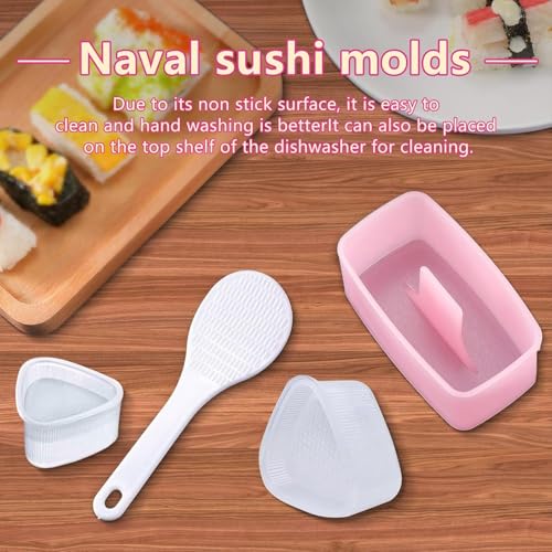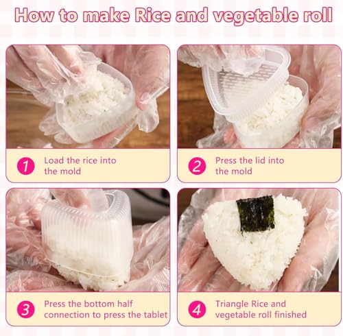 - Large Triangle Mold: You'll receive 4 piece rice ball mold set 2 triangle rice ball molds 1 pink rice making mold 1 non stick rice spoon, which are made of thick, highly durable material
