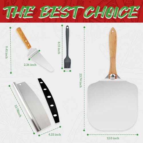 - ✅ 【Complete Pizza-Making Kit 】– This 4-piece set includes everything you need for perfect homemade pizza: a 12-inch aluminum pizza peel, stainless steel , cheese spatula, and silicone oil brush—ideal for baking, flipping, slicing, and saucing.