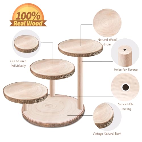 - NATURAL,ENVIRONMENTAL-FRIENDLY-This 4 Tier cupcake tower stand is Made of 100% paulownia wood, It is a completely green and safe way to place and decorate cakes. with a unique wood texture on each plate. It is a highly durable wood that lasts for years and even decades.