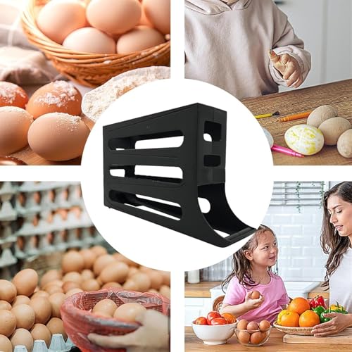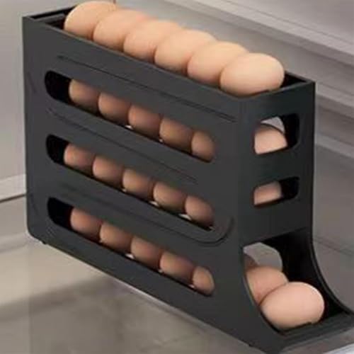 4 Tiers Egg Holder for Fridge, Auto Rolling Fridge Organizer, Refrigerator Kitchen Countertop Cabinet, Holds 30 Eggs(Black)