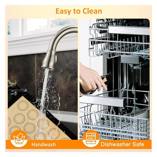 • [Non-stick and Effortless to Clean] The macaron baking mat has a non-stick surface with an even grid, effortless to clean, after use, simply use a dishwasher or rinse the silicone mat in warm soapy water to clean it