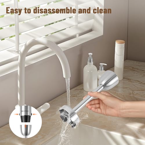 - 【Easy to Use and Clean】Ergonomic handle provides a non-slip, comfortable grip for easy control of the stirring stick. Safe and secure button lock. Handheld blender with removable accessories can be cleaned after rinsing (main unit cannot be immersed in water).
