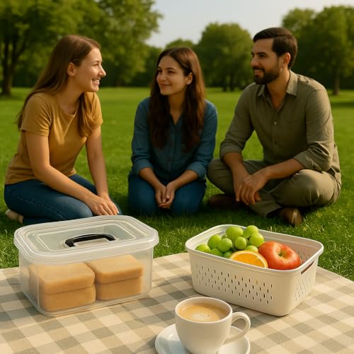 - Portable Convenience with Hidden Handles:With their lightweight and easy-to-carry design, complete with leak-proof seals and clever hidden handles in the lids, these fruit and vegetable containers are versatile for both kitchen storage and on-the-go needs. Whether it's for school, work, picnics, or outdoor adventures, they're perfect for packing lunches or keeping your fruits fresh.