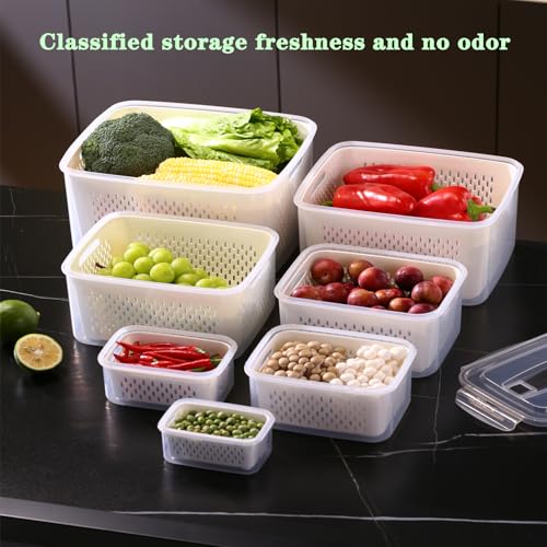 - 5 Sizes For Daily Storage Needs:You will get 5 fridge storage containers with colander size from 380 ml to 4150 ml (12.5 oz – 140 oz ). Our stackable and nestable design fruit organizer not only helps you save valuable space but also keeps your refrigerator or kitchen organized.Suited for Most fruits, vegetables, berries, meats.