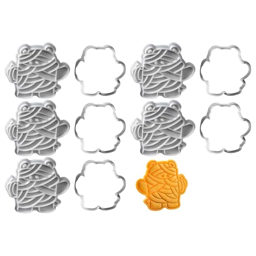 5 Set Food Grade Small Biscuit Moulds Bear Shape Biscuit Stamps Halloween Small Cookie Molds for Special Greetings Baking Accessories
