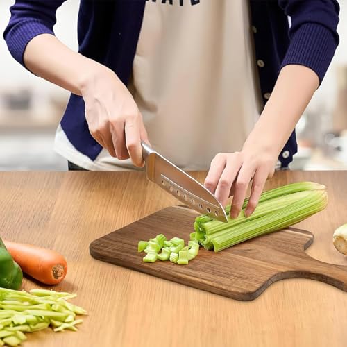 - Wide Application: The wood cutting board with handle is ideal for cutting fruits, breads, cheeses, meats, vegetables, pizzas and many other food, also can be used as serving trays for cake, cheese boards, charcuterie boards, or dinner plates