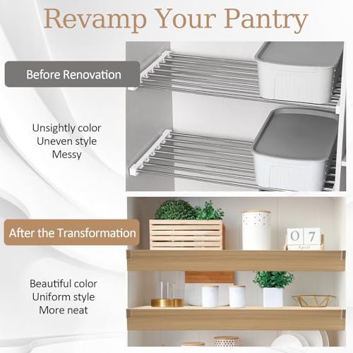 • Enhance Decorative Style and Convenience – Give your wire shelves a sophisticated makeover with our Faux Wood Shelves Cover. These covers not only enhance the decorative style of your home but also bring convenience to your daily life by providing a neat and organized look to your shelves.Order yours today and experience the difference in your pantry, closet, or office.