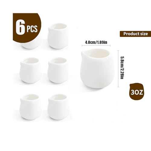 6 PCS Small Milk Jugs,Ceramic Jug,White Milk Jug Set,110ml Mini Milk Jug for Milk Coffee Sauce Gravy Boat Custard Pouring Jug Milk Jug Small (White with No Handle)