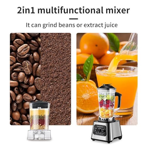 6000W Mixer Electric Blender, 2-in-1 Smoothie Maker with 2.5L Food Chopper and Grinder, Crushed Ice and Self-Cleaning Function, BPA Free