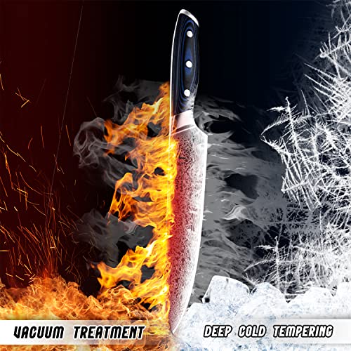 [8-Inch] Chef Knife FANTECK Damascus Kitchen Knife Cooking Knife High Carbon Ultra Sharp VG-10 67 Layers Stainless Steel Kitchen Meat Cutting Gyuto Chef Knife [Gift Box]- Full Tang Blue G10 Handle