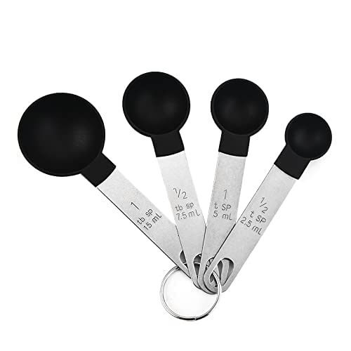 8 Pcs Measuring Cups and Spoons Set, Stackable Stainless Steel Handle Accurate Tablespoon for Measuring Dry and Liquid Ingredients Small Teaspoon with Plastic Head (Black)