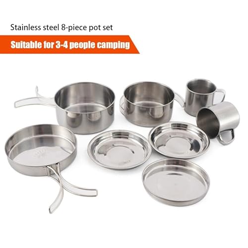 8-Piece Stainless Steel Camping Cookware Set – Lightweight Pots, Pans & Plates for Hiking, Backpacking & Outdoor Cooking (410 Stainless Steel, Compact Design)