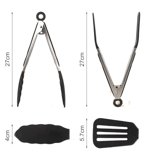 - Package Include: This Kitchen Tongs set includes 1pc 9 inch food tong and 1pc 9 inch spatula tong, providing versatile use for serving, flipping, and frying. Perfect for various occasions such as camping, hiking, traveling, business trips, or picnics.