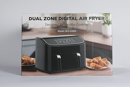 9L Dual Air Fryer, 3L+6L XL Capacity Dual Zone Digital Air Fryer, 2 Drawers, Non-Stick, Sync-Finish, 6L for Whole Chicken, 6 in 1 Cooking Presets, Healthier & Less Oil, Energy-Saving, Dishwasher-Safe