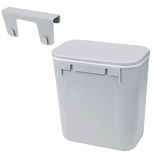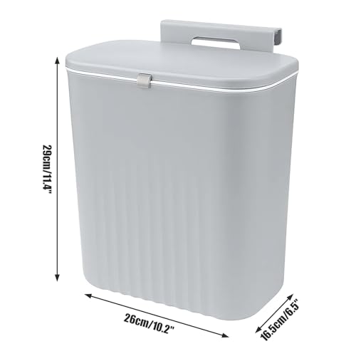 9L Kitchen Bin Hanging Trash Bin with Odor Lock Lid Slim Under Sink Garbage Can for Kitchens Food Waste Caddy Fits Cabinet Doors Grey