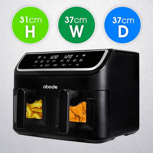 Abode Digital Air Fryer 2000W 9L Dual Zone with Removable Baskets, 12 Preset Options, Digital Touch Control Panel 30 Minute Timer, Overheat Protection, Extra Large Air Fryer for Family AAF9000