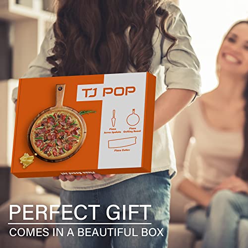 Acacia Wood Pizza Board, TJ POP 12 inch Pizza Board with Pizza Cutter and Pizza Peel, Round Pizza Chopping Board Serving Tray for Baking Homemade Pizza