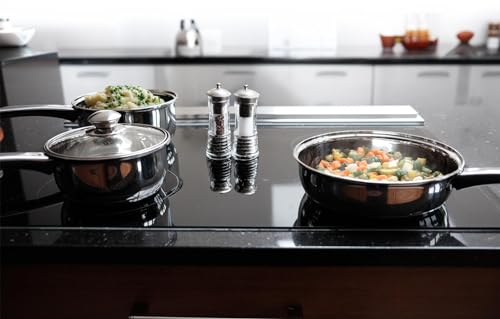 - Value Pack: In this five pieces induction set, you get a 14cm milk pan, three 16cm, 18cm, and 20cm saucepans with glass lids, and a 24cm frying pan.