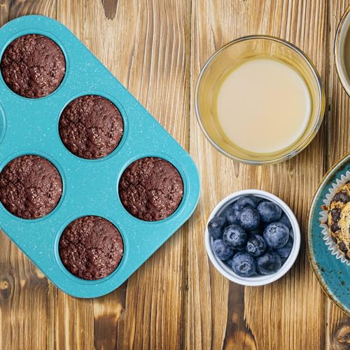 - Acooruiteng 6 Cup Muffin Trays Carbon Steel Cupcake Tray Reusable Muffin Tin Non-Stick Muffin Tray Cupcake Tin Muffin Tins Baking Moulds Muffin Pan for Making Muffin and Cupcake Tart Bread Blue
