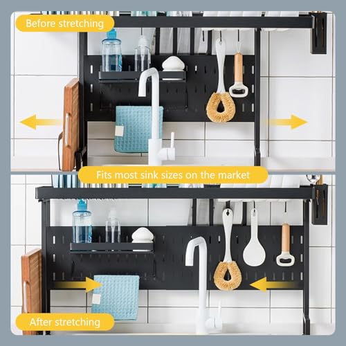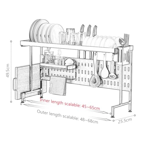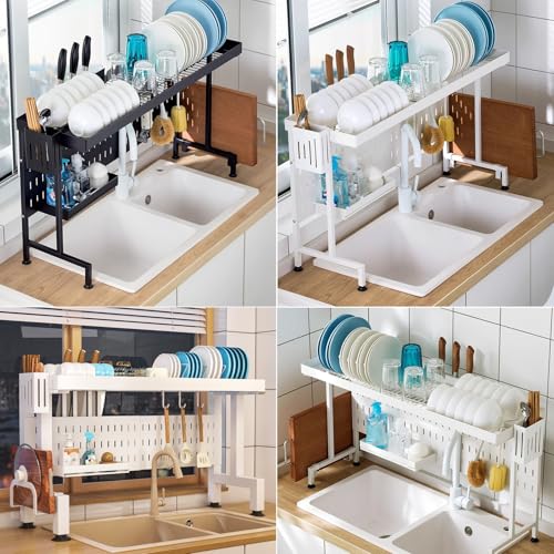 - Maximize Your Kitchen Space with Our Over-Sink Dish Drying Rack. Perfect for Holding Dishes, Spice Jars, and Cutting Boards, This Rack Includes Hooks for Hanging Utens, Meeting Your Family's Daily Storage Needs. Ideal for nizing Kitchen Essentials While Saving Valuable Counter Space. and Stylish, It Complements Any Kitchen Décor Effortlessly.