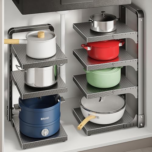 - Optimize Cabinet Space: The Compact Kitchen Pot Shelf is designed to fit perfectly in under-cabinet corners, maximizing your kitchen's storage capabilities while keeping your pots, pans, and cookware organized.
