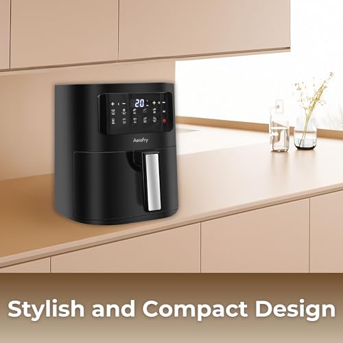AEROFRY Air Fryer 4.5L Capacity, Oil Free, Energy and Time Saver, 10 Presets Compact Design with Recipes Cookbook, Non-Stick, Dishwasher Safe Basket, Compact Air Fryer, 2-Years Warranty, Black