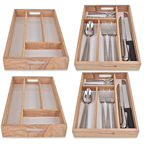 AHS Small Wooden Cutlery Tray – Rubberwood Adjustable 4 Compartment Box – Heavy Duty Cutlery Tray For Drawer – Kitchen Accessories Storage for Knives Forks Spoons – 32cm x 24cm x 4cm approx