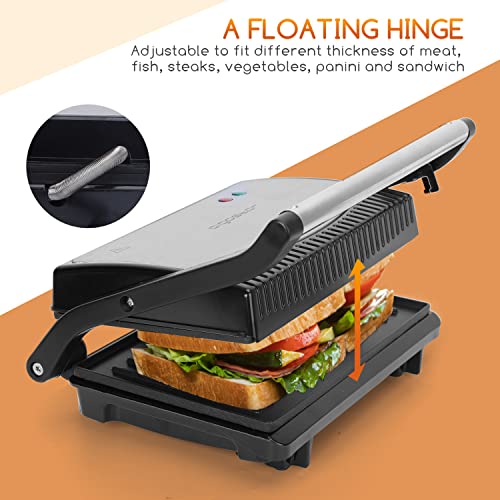 - 【Multifunctional Snack Maker】This panini toaster can be used as a Panini press, sandwich maker, toaster and grill, perfect for making sandwiches, Panini, omelettes, grilled steaks and roasts etc, easy to prepare for breakfast, dinner, and barbecue.