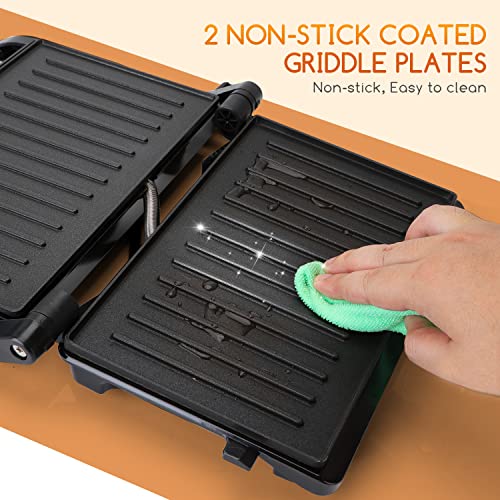 - 【Non-Plate Plates】Non-stick coating aluminium plates for easy cleaning, which prevent food from sticking to the panini maker. Wipe the plate surface with soft damp cloth after use, and they are dishwasher safe too.