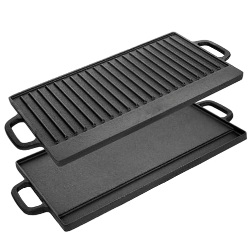 - âś” HIGH QUALITY MATERIALS – Our beautiful cooking plate is made of cast iron. This high quality cast iron plate material is durable, sturdy and corrosion resistant. It is suitable for gas and solid sheet hobs and can also be used in the oven or on a hot grill. Replace your grills and electric pans and enjoy exceptional meals cooked evenly.