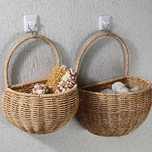 - Charming Design: The light brown color and pastoral style of this wall hanging basket give it a simple yet elegant appearance. It seamlessly blends with various interior styles, allowing you to enhance your kitchen or living space with a natural aesthetic. This design is reminiscent of hanging storage baskets that add a rustic touch to any room