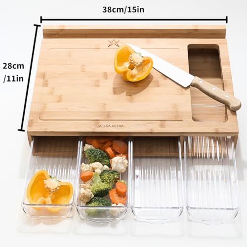 - Multifunctional Design: This chopping board features 4 integrated drawers for organising ingredientsl, vegetables, meat and fish