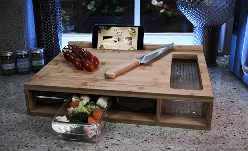 Altra Astra Chopping Board with Drawers | Bamboo | Tablet/Phone Holder | Space Saving Meal Prep Station