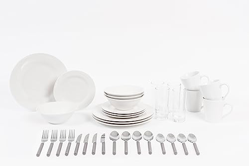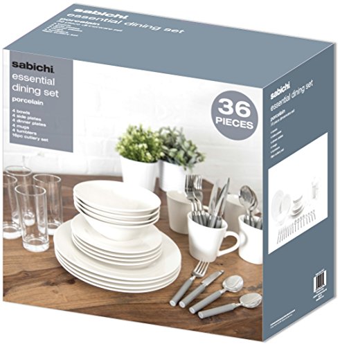 - Product 2: Included – Within this 36 piece dinner set are 4 White Dinner Plates, 4 Side White Plates, 4 White Bowls, 4 x 11oz V Mug, 4 x Tumbler, 16pc Plastic Handle Cutlery Set. The plates and bowls set for 4 provide ideal measurements for dining. All the Plates, Bowls, and Mugs within this dining set are all microwave, and dishwasher-safe.