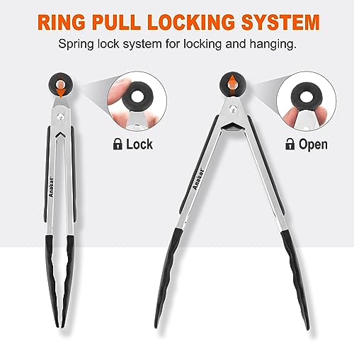 - PULL RING LOCK AND UNLOCK & HANGING LOOP FOR EASY STORAGE: Featuring a locking mechanism, the pull ring prevents Anaeat tongs from opening or closing unintentionally. Convenient access when hung on the hooks of your grill.