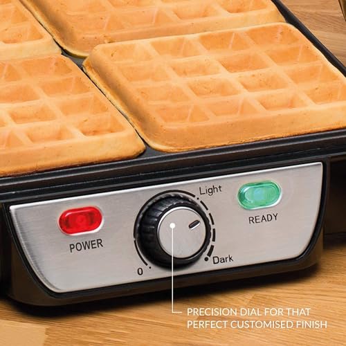 Andrew James 4 Slice Belgian Waffle Maker | Non-Stick Four Waffle Maker Machine | Waffle Irons with Adjustable Temperature | Cast Waffle Iron for Delicious Deep Waffles | 1100 Watts