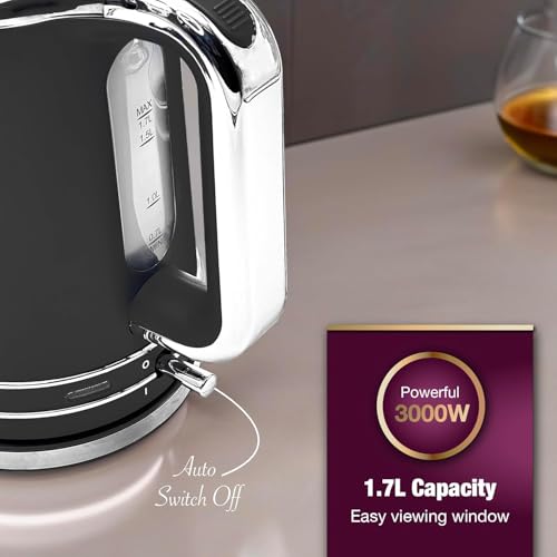 Andrew James Fast Boil Electric Kettle, Large 1.7L Capacity, Cordless Quiet Kettle with Reusable Filter, Quick Boil, Modern, Stylish, Practical, Lumiglo 3000W (Black)