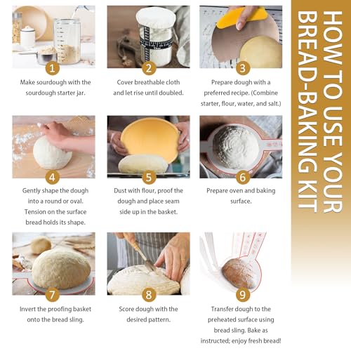 ANOTION Sourdough Starter Kit, 14 Piece Sourdough Bread Making Kit, Bread Baking Supplies Banneton Basket Kit for Sourdough Proofing Bread Making Kit, 33OZ Jar