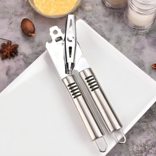 - ✅ MATERIAL — Fully made up of Stainless Steel Material which Strong as well as durable. Handles, Blades, knob everything is made up of Stainless Steel which is not easily breakable like others Plastic Ones if you are using correctly. Our can opener (heavy-duty) features a strong and resilient body that won’t bend or break and won’t leach harmful chemicals into your food. The can opener is safe to use by people of all ages.