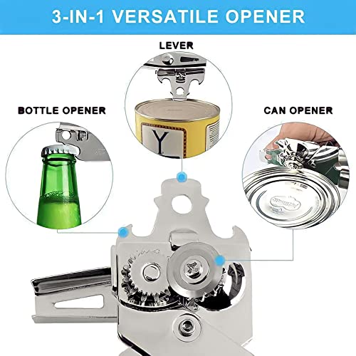 - ✅ MULTIFUNCTIONAL CAN OPENER — Can openers is a humble kitchen gadget that everyone Need it, also one amongst the most useful. Open cans with ease, lift lids in a jiffy, open bottles, and lever or loosen a can lid in a jiffy without injuring your hands with our 3-IN-1 hand can opener.
