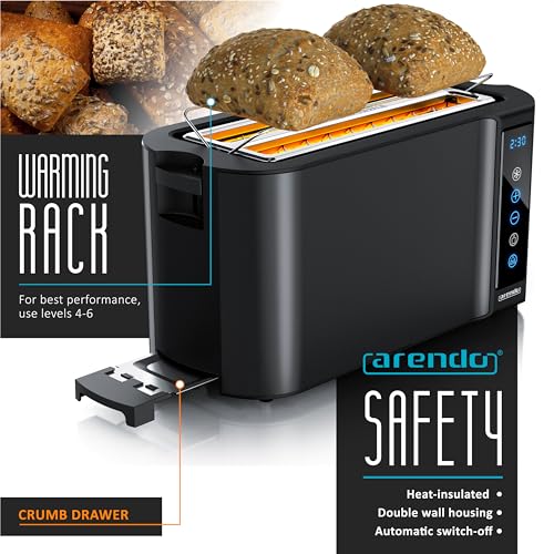 Arendo – 4 Slice Long Slot Toaster – Touch Panel – Remaining Time Display – Double Wall Housing – with Warming Rack – 7 Browning Settings – Auto Bread Centring – Reheat Refrost Cancel Function