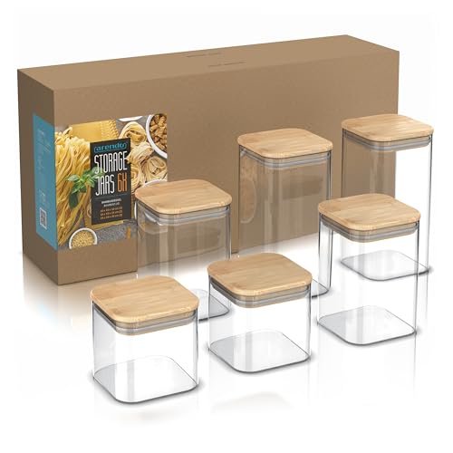Arendo – Glass Food Storage Containers with Lids, Square Glass Canister Set of 6, Airtight, BPA-Free, Microwave & Dishwasher Safe, Pantry Organizers for Pasta, Rice, Tea, Coffee Beans