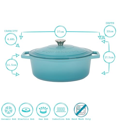 - This 4.68L Oval Cast Iron Casserole Dish from Argon Tableware is your new ultimate all-in-one kitchen companion, allowing you to cook, roast, braise and bake an almost limitless variety of dishes in truly timeless style.