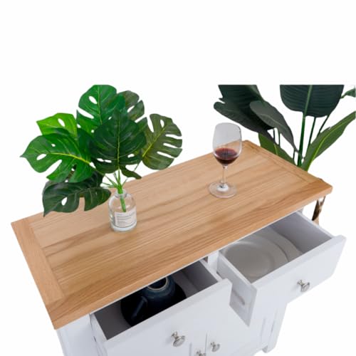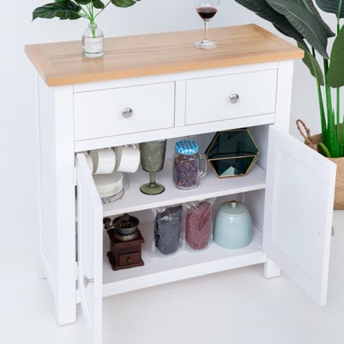 ARPHASLE Mini Sideboard White Storage Cabinet Small Solid Wood 2 Door Cupboard with 2 Drawers for Kitchen Dining Room Bathroom or Hallway, SHZUKTKL165N