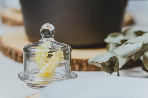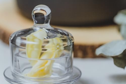 - Chic glass butter cloche with lid: Present butter, spread and other individual portions of food in style with this beautiful glass butter dome dish