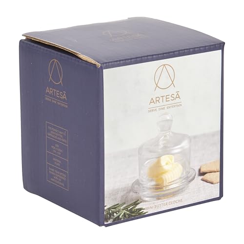 Artesà Glass Butter Dish, Small Cloche Holder with Lid for Serving Butter, Spread, Cheese, Pate and Tapenades, 9 x 9.5 cm, Clear Glass