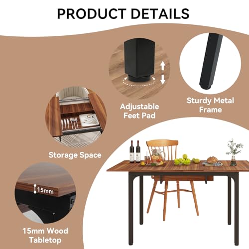 Be the first to review “ARTETHYS Dining Table, 110-150cm Extendable Dining Table with Hidden Storage for 4-6 People, Large Kitchen Dinner Table with Metal Legs for Restaurant Home, Brown”