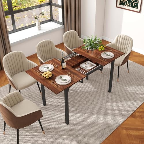 ARTETHYS Dining Table, 110-150cm Extendable Dining Table with Hidden Storage for 4-6 People, Large Kitchen Dinner Table with Metal Legs for Restaurant Home, Brown